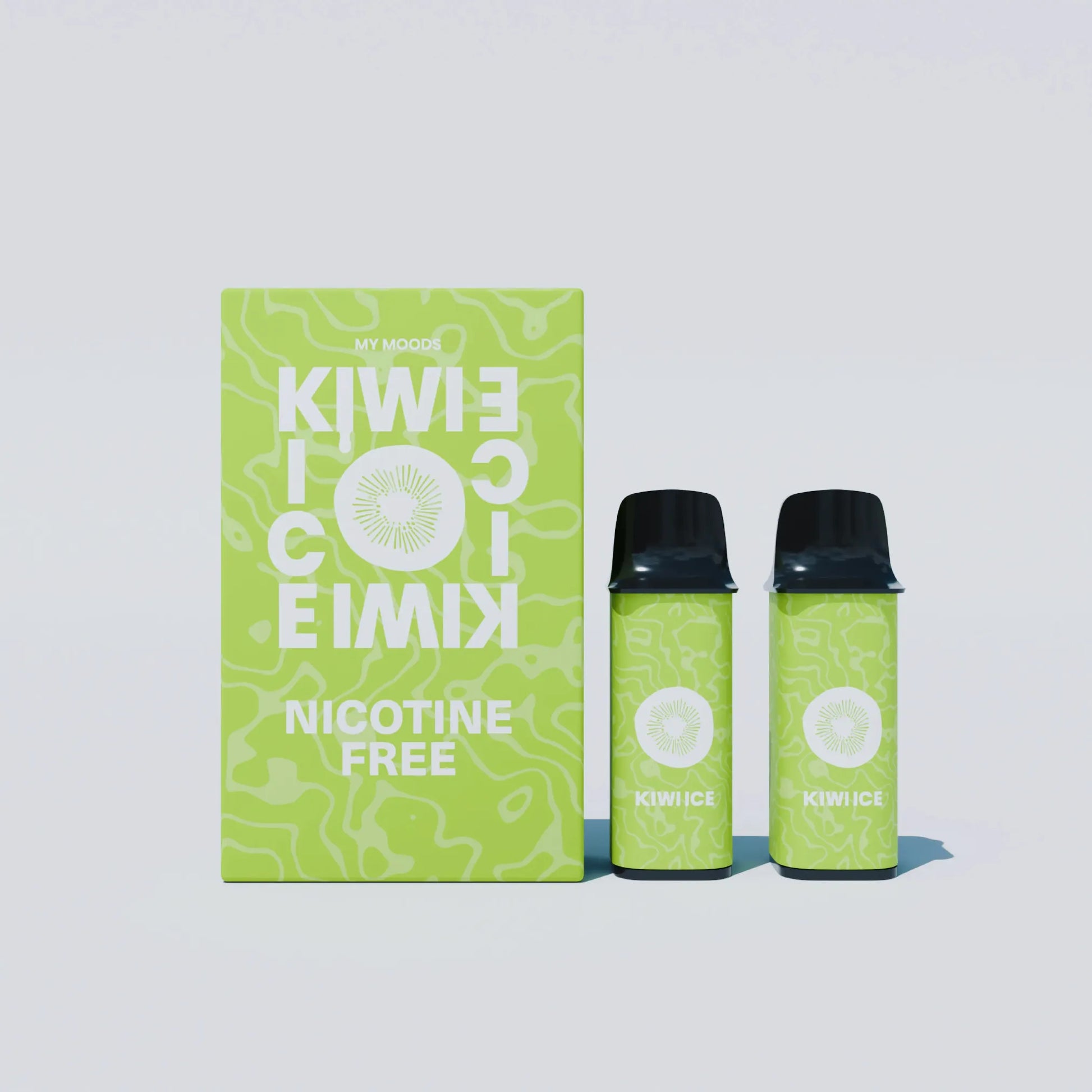 MyMoodsが「Moodを変えるVAPE」をコンセプトに大手香料メーカーと約2年の期間を掛けて開発したPOD型VAPEのノンニコチンKIWI ICE PODとなります。