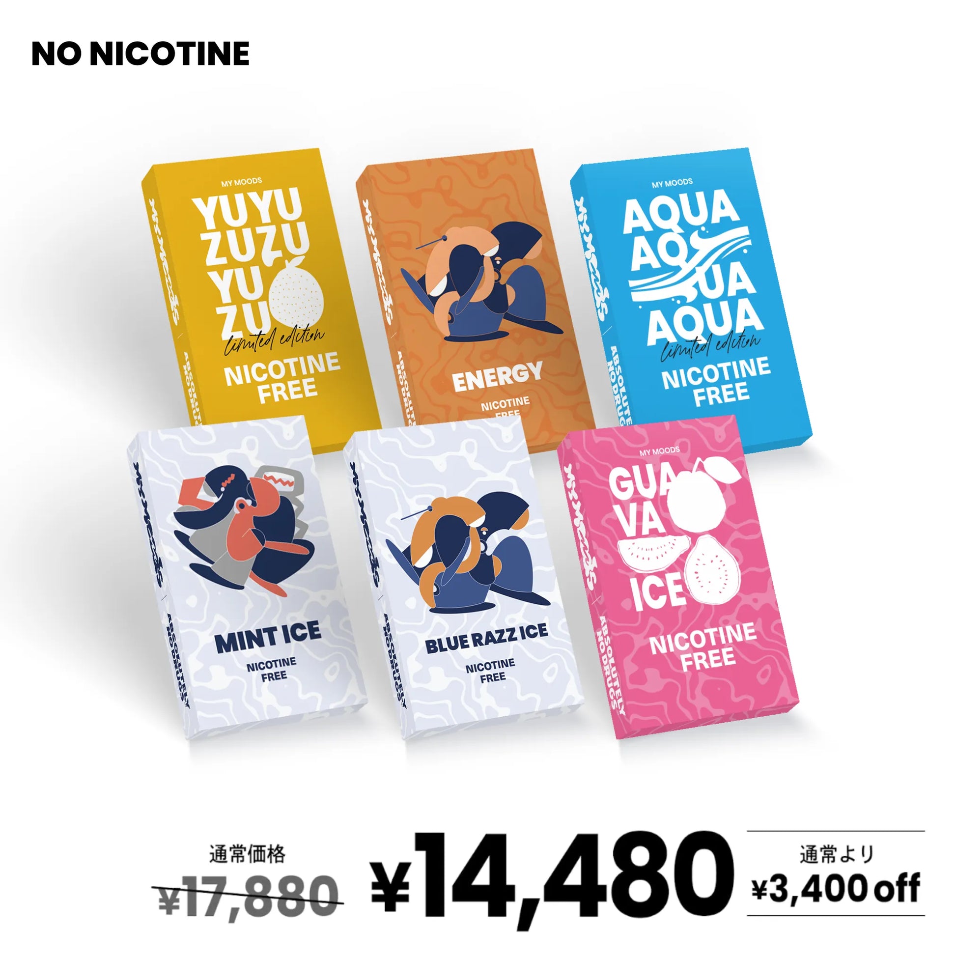 MyMoodsが「Moodを変えるVAPE」をコンセプトに大手香料メーカーと約2年の期間を掛けて開発したノンニコチンPOD型VAPEのノンニコチンPODが17,880円分が入ったお得なセットとなります。